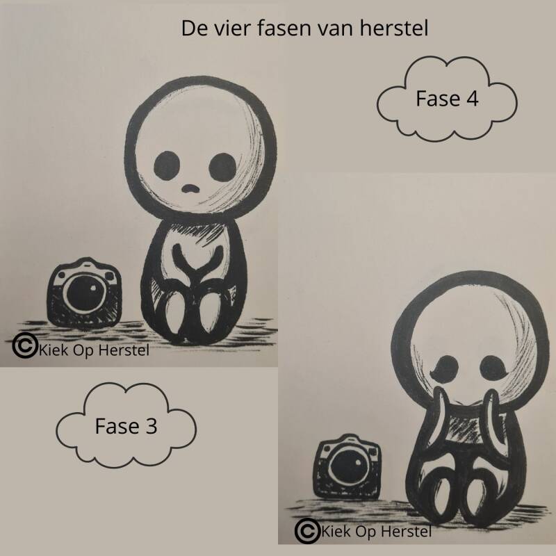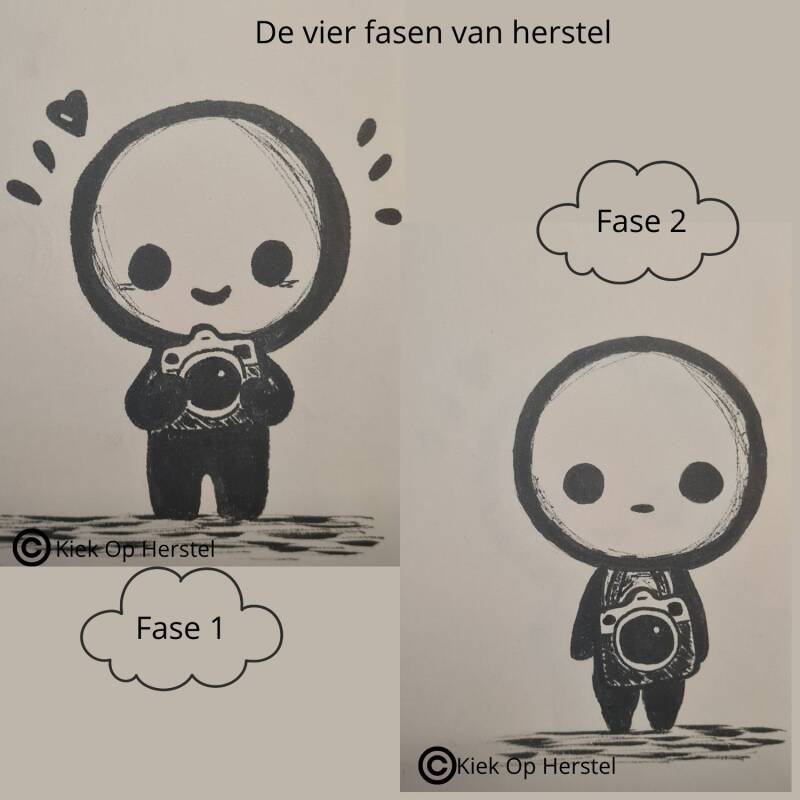 Bij Kiek Op Herstel werken we met vier herkenbare fasen van herstel (Cheryl Gagne). Ze geven houvast, zonder dat ze je vastzetten. Iedereen doorloopt deze fasen op een unieke manier en in een eigen tempo.